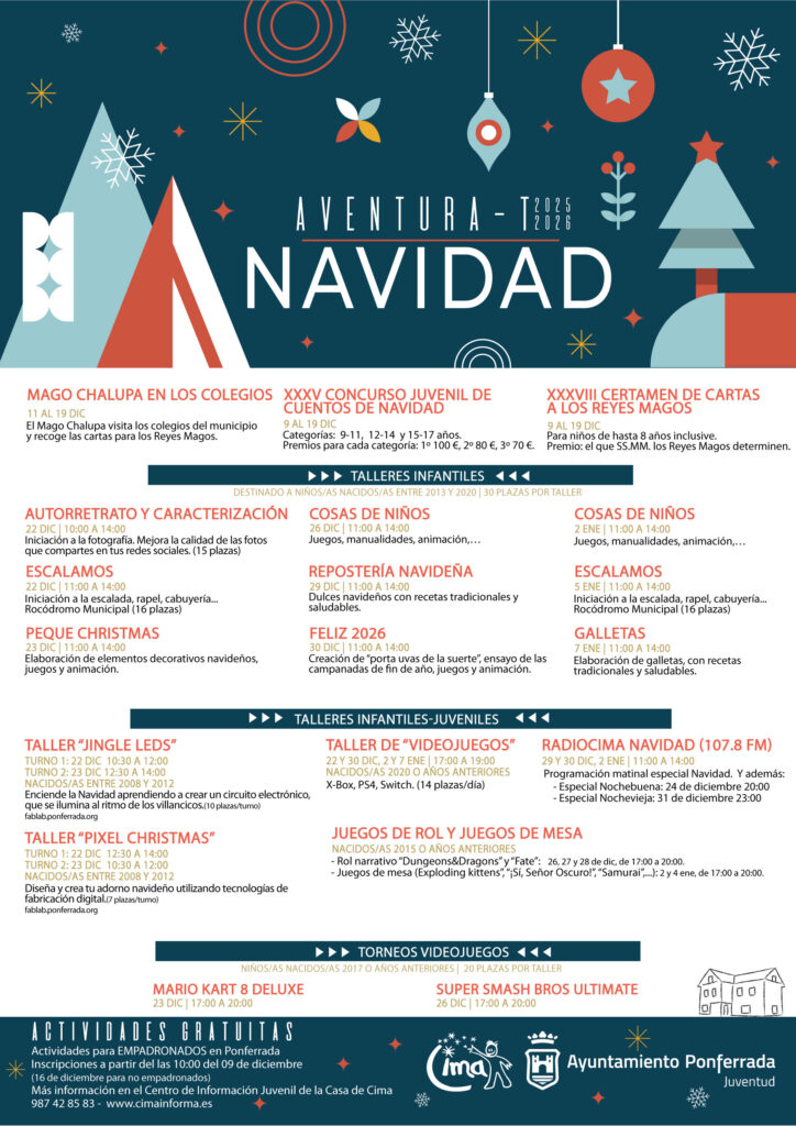 Durante estas navidades podrás disfrutar de animaciones, talleres de cocina, crear tu propia decoración navideña, jugar a rol, videojuegos,… actividades infantiles y juveniles totalmente gratuitas.