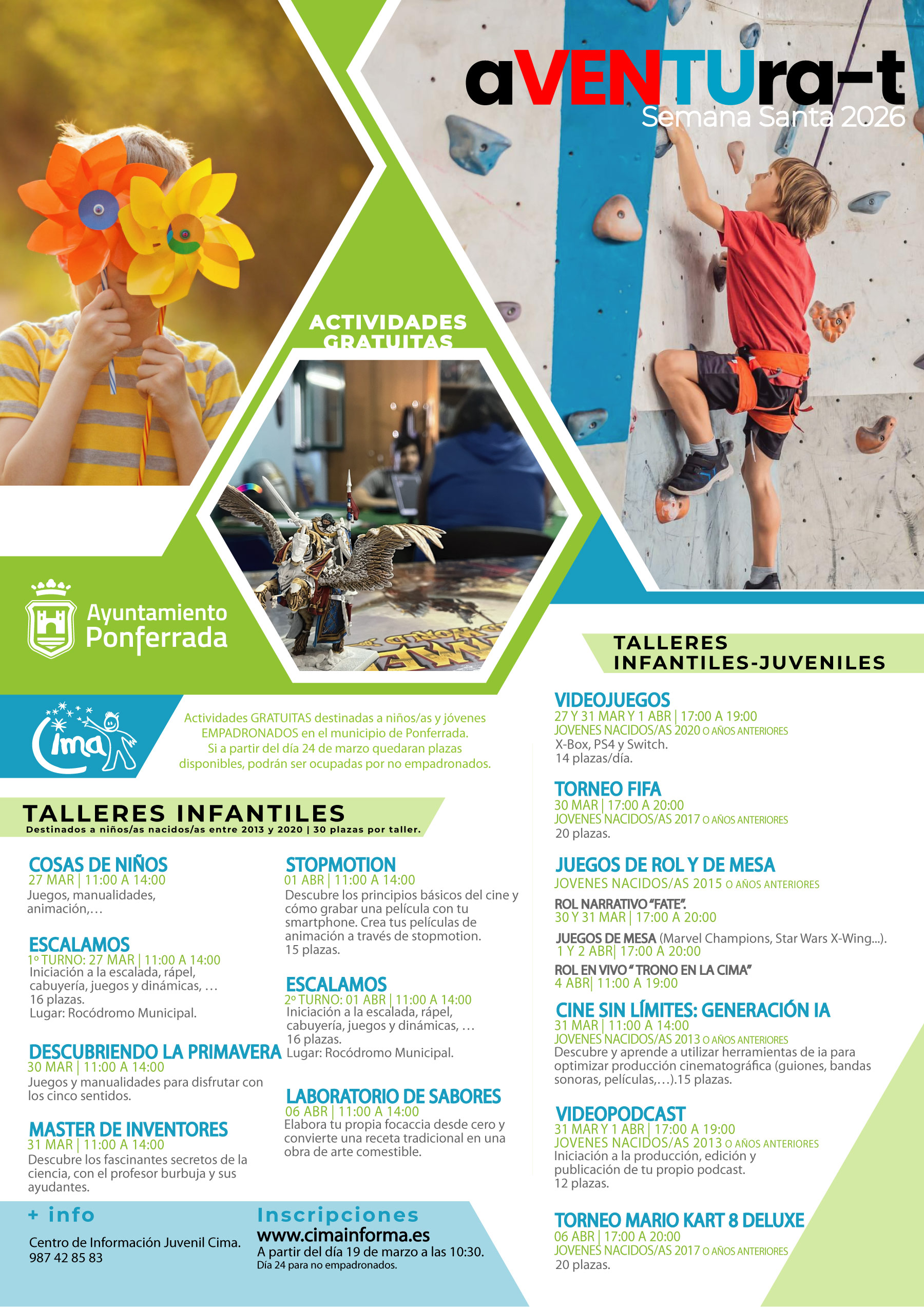 - Actividades para empadronados en el Municipio de Ponferrada. Si a partir del día 24 de marzo quedaran plazas disponibles, estas podrán ser ocupadas por no empadronados.